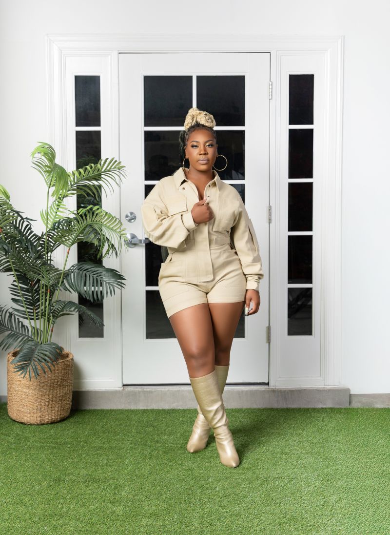 Elevate your wardrobe with the Having a Khaki Moment Romper, designed for both style and practicality. Featuring long sleeves and a structured collar, this piece offers a polished look while ensuring comfort. Functional pockets add convenience, and the front zipper provides effortless wearability. Adjustable details at the waist and wrists allow a tailored fit, enhancing your silhouette with subtle sophistication. Perfect for occasions where refined ease is a must. Our model grabbed her gold boots, and she is definitely ready for the day or night.