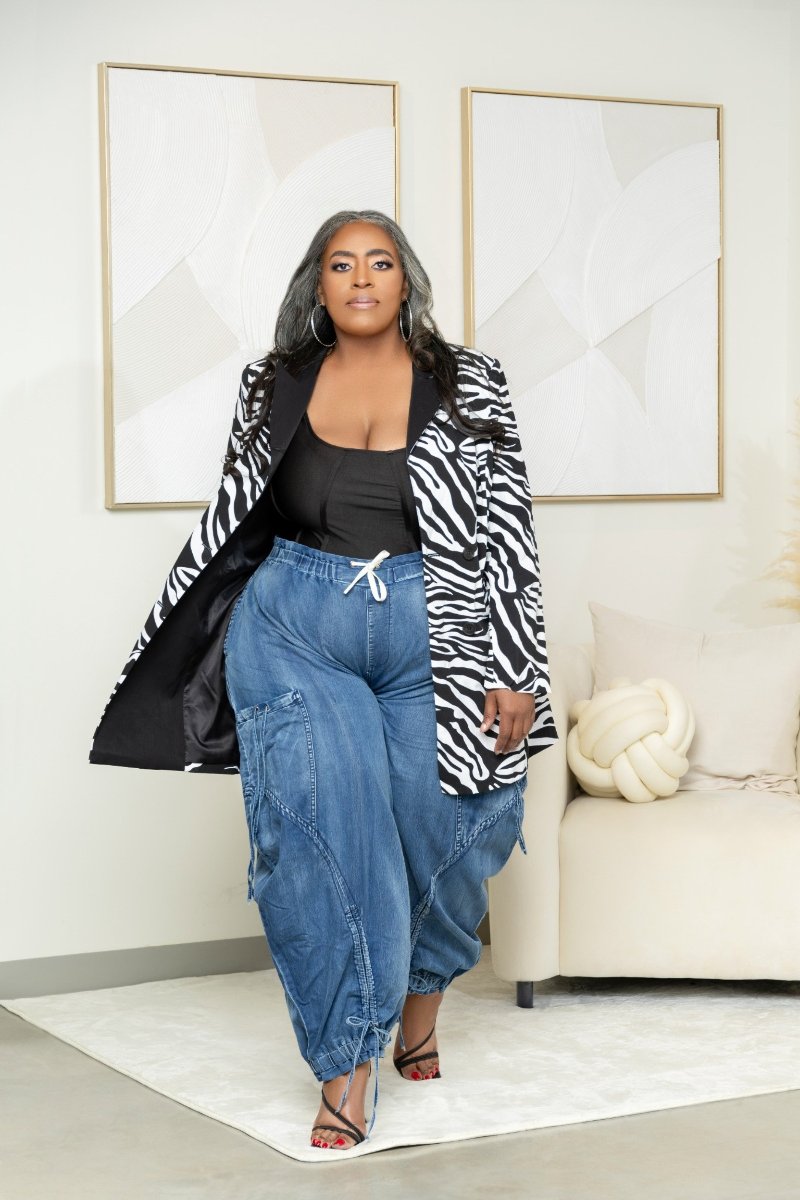 You need these jeans! Featuring drawstring waist, pockets and drawstring on the leg. Made to fit oversized. We paired with our Graffiti Jacket for a chic polished look. Available in sizes small - 2x.